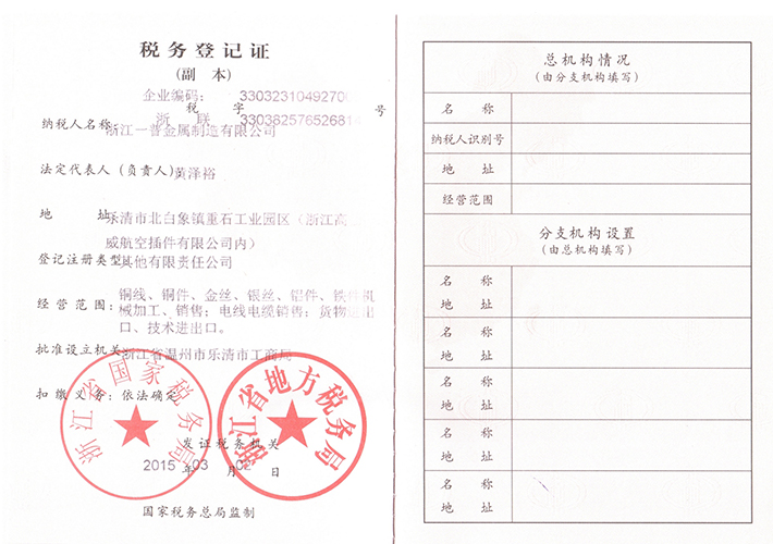 新版税务登记证