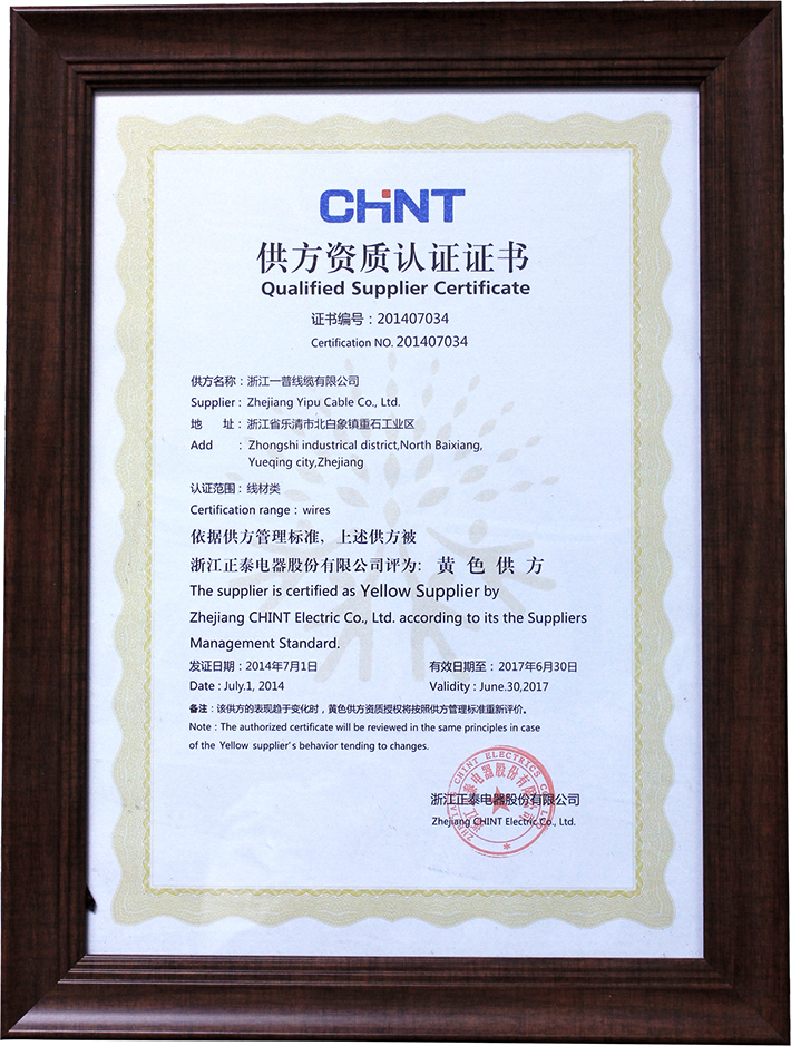 供方资质认证证书